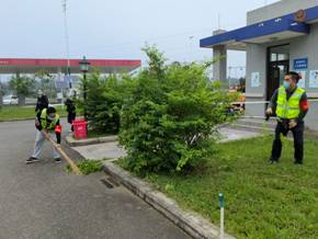在收費站,黨員志愿者積極主動配合屬地政府開展疫情防控工作,不間斷開展場所消殺,疏導出站車輛,疏散滯留人員,清掃環(huán)境衛(wèi)生。