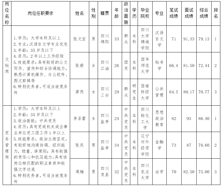 根據(jù)高開司發(fā)布的招聘公告及招聘相關(guān)規(guī)定,經(jīng)筆試、面試等程序,現(xiàn)將成績予以公示。